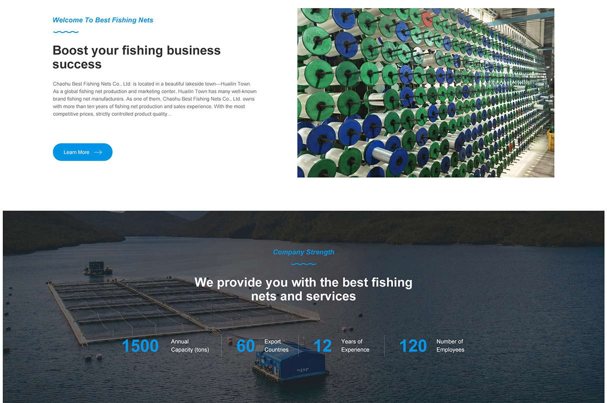 安徽巢湖佰絲漁網(wǎng)是一家專業(yè)生產(chǎn)出口漁網(wǎng)的廠家,能過線上咨詢聯(lián)系到了BONTOP公司,通過簡單的溝通后認可了我們的專業(yè)水準,委托我司進行外貿(mào)獨立站設(shè)計,采用Google AMP網(wǎng)頁技術(shù)開發(fā),HTML響應(yīng)式自動適合電腦、平板和手機訪問。